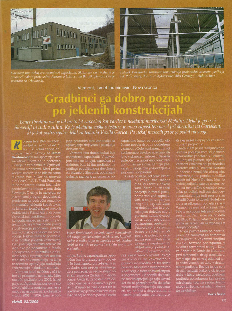 Presso l'azienda VARMONT d.o.o. siamo consapevoli dei vantaggi e dell'utilita dell'acciaio; pertanto, in conformita con le norme vigenti, sulla base della nostra conoscenza, esperienza e attenzione al cliente produciamo strutture in acciaio, tettoie, porte, recinzioni e scale.